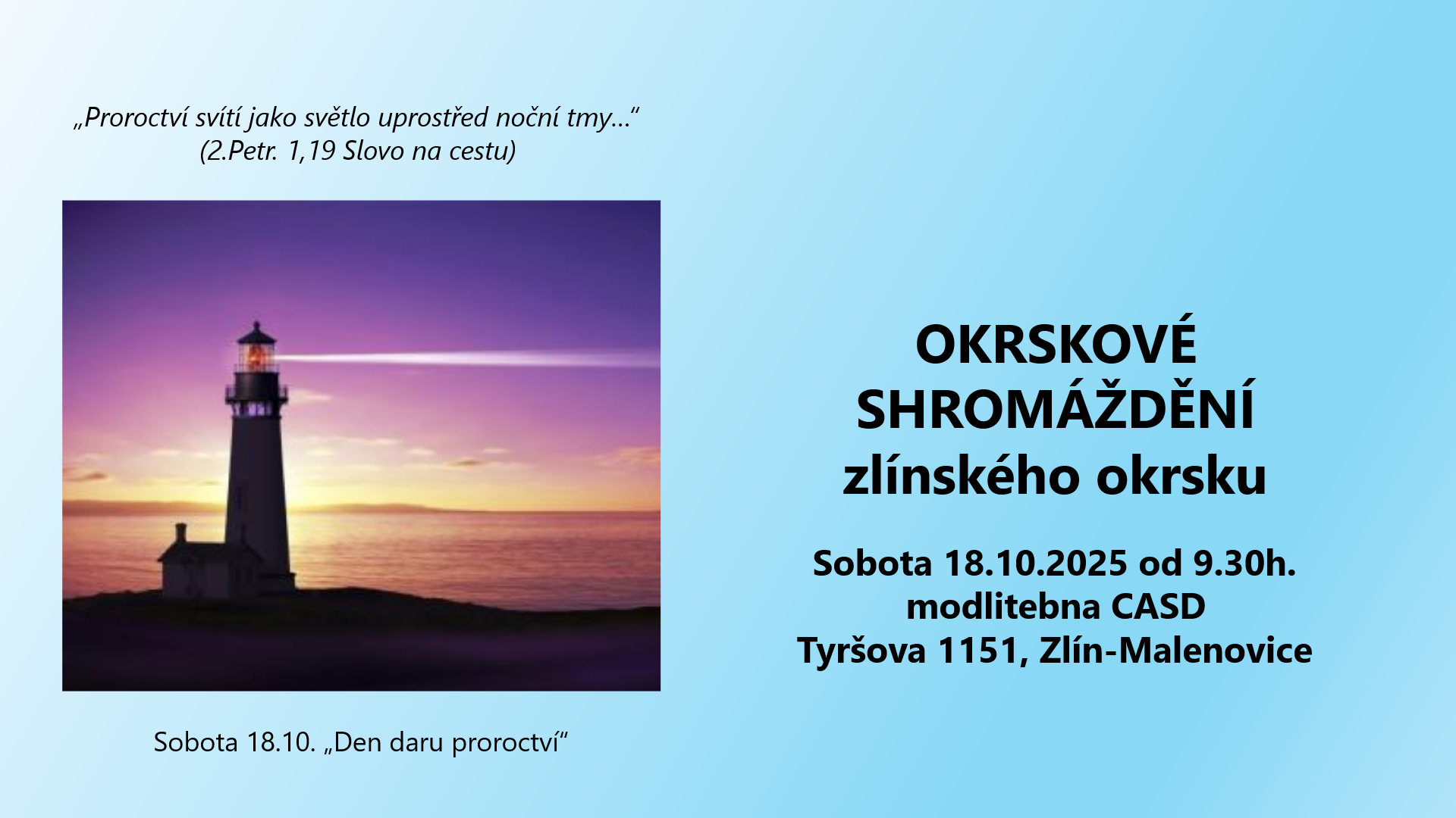 Během trvání Deseti dnů modliteb 2025 (8.1.-18.1.) je možné využít i online setkávání v modlitební místnosti. Vždy v čase od 18 do 19 hodin. Vedení si zajišťují přítomní účastníci sami.